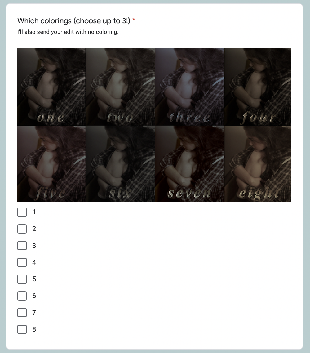 Once you purchase this listing you will be redirected to a google form that you will need to fill out, swipe to see the questions asked in advance.